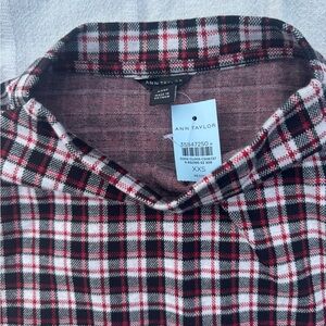 Ann Taylor Plaid Short Sleeve Tee - Black, White, Red