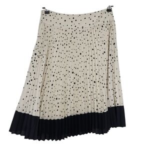 Ann Taylor Pleated A Line Skirt Ivory Polka Dot Side Zip Lined Flare 0