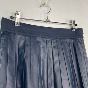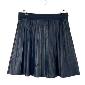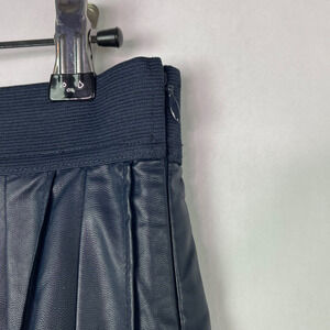 Ann Taylor Faux Leather Pleated Mini Skirt Elastic Band Navy Sz SP Petite Small