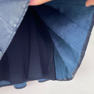 Ann Taylor Pleated Mini Skirt Faux Leather Elastic Band Navy Sz SP Petite Small