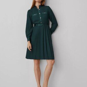 Ann Taylor Pleated Split Neck Flare Dress