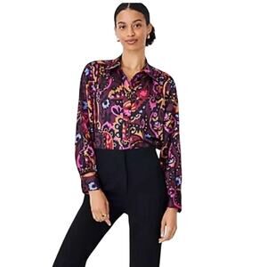 Ann Taylor Plum Rose/Burgundy Classic Paisley Button Down Blouse - SIZE SP