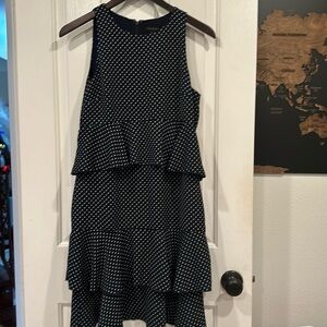 Excellent used condition Blue and white polka dot dress Measure 35” in length Layered 17 inches pit to pit
