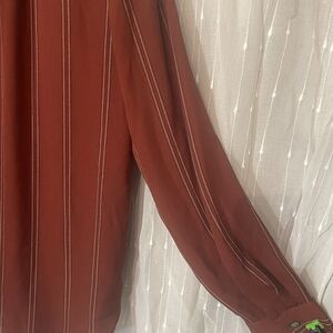 Ann Taylor Popover Tunic Burgundy Brick Red Plaid Lightweight Blouse Size Medium