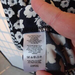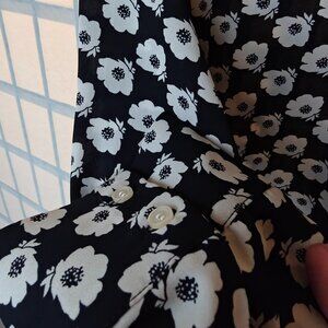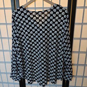 Ann Taylor Poppy Floral Flowy Floral Long Sleeve Black White Pullover Blouse XL