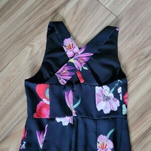 Ann Taylor Poppy Floral High Neck Criss Cross Back Midi Dress in Black