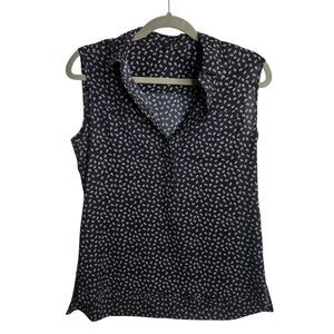 Ann Taylor Preppy Old Money Popover Blouse Sleeveless Collared Anchor Print Sz S