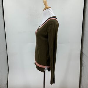 ANN TAYLOR PREPPY TEE WOMENS XS EXTRA SMALL GREEN V NECK LONG SLEEVE SILK COTTON
