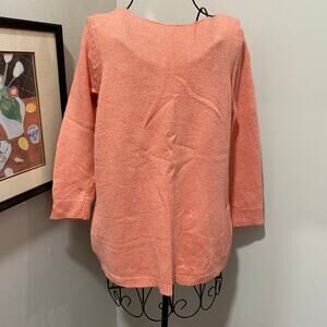 Ann Taylor sweater. Peach knitted pullover. Wide neck. 3/4 length sleeves. Pockets at the hip.