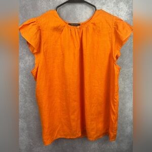 Ann Taylor Pure Linen Flutter Sleeve Breathable lightweight Top Orange Size XL