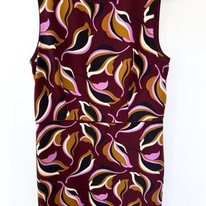 Ann Taylor Purple Burgundy Brown Leaf Print Sleeveless Professional Work Dress 6