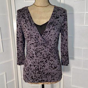 Ann Taylor Purple Cheetah 3/4 Sleeves Surplice