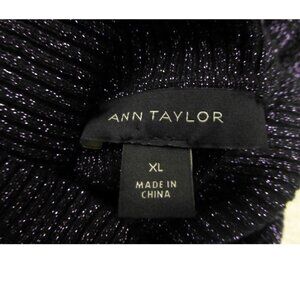 Ann Taylor Purple Metallic Turtleneck Puff Sleeves Sweater (Size XL)