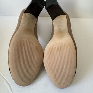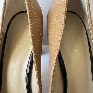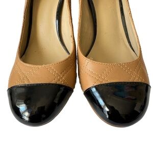 Ann Taylor Quilted 2Tone Beige Cap Toe Leather Chunky Heel Comfort Size 7.5M
