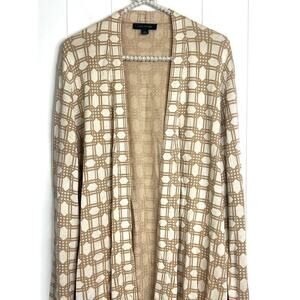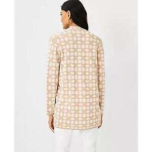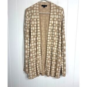 Ann Taylor Rattan Print Open Front Cardigan Sweater in Gold and Cream Size XL