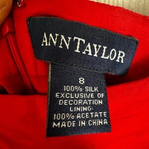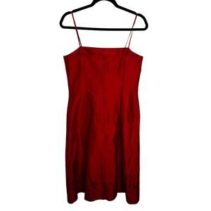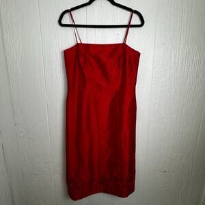Ann Taylor Red 100% Silk Dress Size 8 Sleeveless Romantic Beaded 90s Midi Sheen