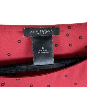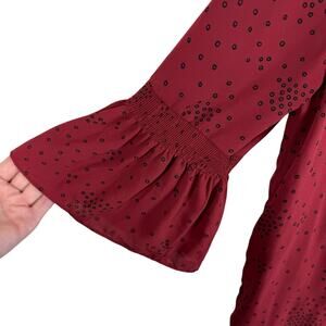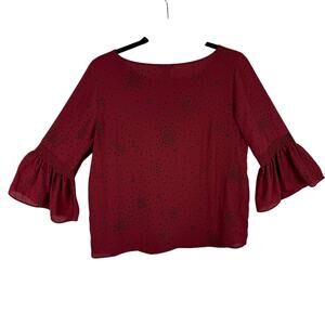 Ann Taylor Red Black Patterned Round Neck 3/4 Bell Sleeve Lightweight Blouse S