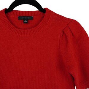 Ann Taylor Red Christmas Knit Puff Sleeve Sweater XSP Wool Womens Top