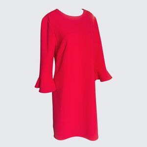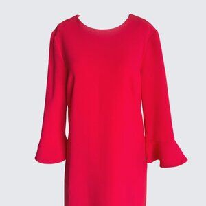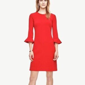Ann Taylor Red Doubleweave Stretch Knit 3/4 Fluted Sleeve Sheath Dress Size 8