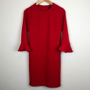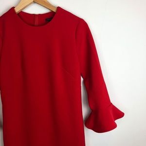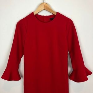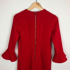 Elegant red dress with flared sleeves. Perfect for any occasion. Features a back zipper.