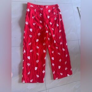 Ann Taylor Red Leaf Print Pants red and white capri size 4 wide legs