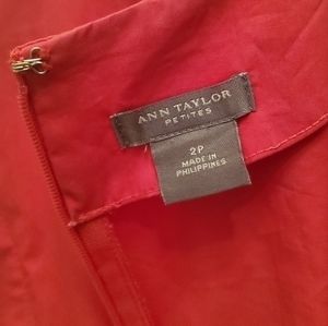 Ann Taylor Red Poplin Pleated Cap Sleeve Split Neck Dress 2P Petite XS