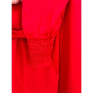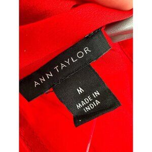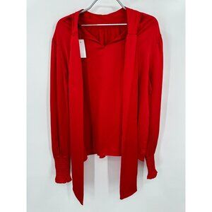 Ann Taylor Red Smocked Cuff Tie Neck Blouse M NWT Career Business Work Office