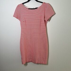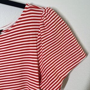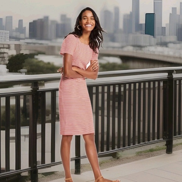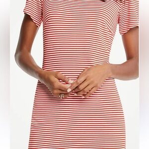 Chic and effortless, this Ann Taylor red and white striped dress is perfect for work, brunch, or summer events. Designed with subtle puff sleeves for a feminine touch, it features a flattering sheath silhouette, a hidden back zipper for a clean finish, and a soft, stretchy rayon blend for all-day comfort.