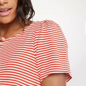 Ann Taylor Red Striped Puff Sleeve Dress Size 4 Stretchy Fit