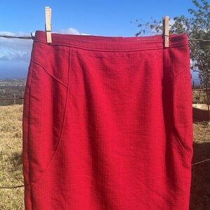 Ann Taylor Red Wool Pencil Skirt