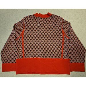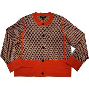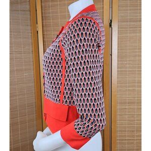 Ann Taylor Retro Geo Print Sweater Womens Small Coral 3/4 Sleeve Jacket Cardigan