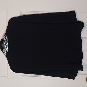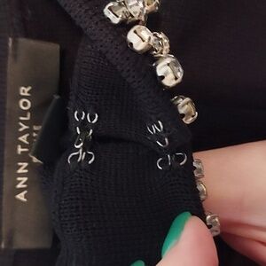 Ann Taylor Rhinestone Neckline Cardigan in Black