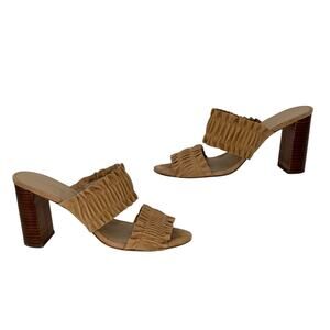 Ann Taylor Ruffle Heels Mule Sandal SZ 8.5 Womens Tan Boho Chic Casual Vacation