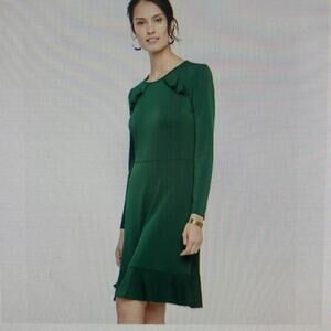 Ann Taylor Ruffle Long Sleeve Dress Size 6 Tall Hunter Green