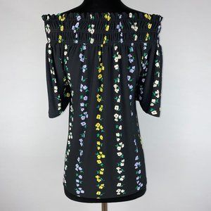 Ann Taylor S Floral Patterned Off The Shoulder Short Sleeve Blouse Top.