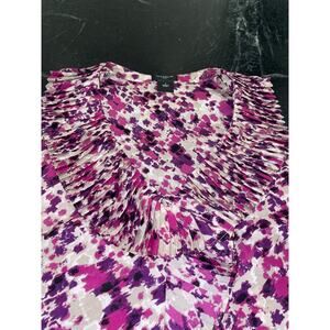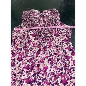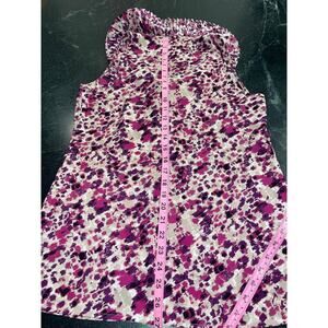 Ann Taylor SM sleeveless blouse ruffled neck, purple tones.