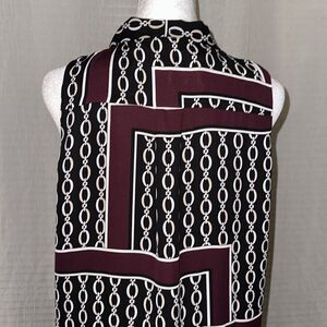 Ann Taylor SP Burgundy Black Ivory White Chainlink Sleeveless Shell Tie Blouse