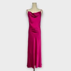 Ann Taylor Satin Scoop Neck Midi Slip Dress in Rich Pink Berry Size 4
