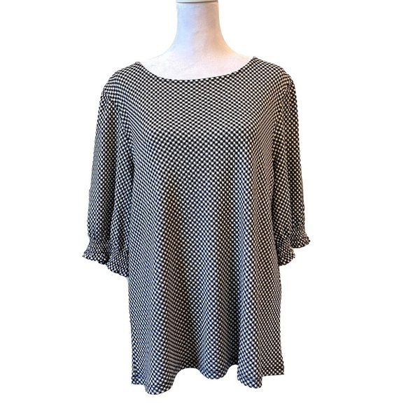 Ann Taylor Scoop Neck Checkered Print Top with Half Sleeves Size XL
