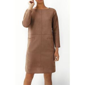 Ann Taylor Seamed Faux Suede Shift Dress sz 8P Petites Drop Waist. Super soft fabric features drop waist with pockets, Boatneck, and fully lined. Polyester blend. Machine washable. Item in excellent gently used condition. No known rips, tears, holes, stains or defects. Retails $159