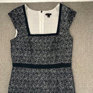 Ann Taylor Sheath Dress Sz 6 Dark Navy Blue Knit Square Neck Cap Sleeve Zipper