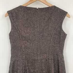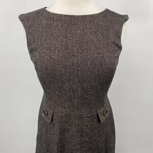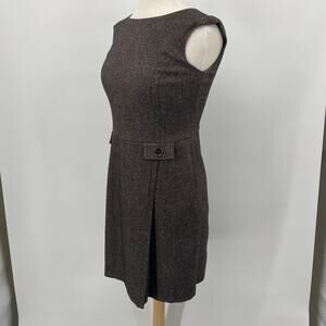 Ann Taylor Shift Dress Front Button Pleats Virgin Wool Brown Petite Womens 4P