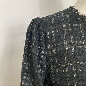 Ann Taylor Shimmer Plaid Fringe Tweed Jacket