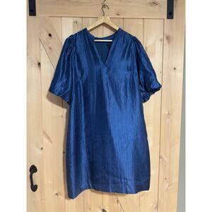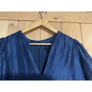 Ann Taylor | Shimmer Puff Sleeve Shift Party Dress in Blue | Size 16