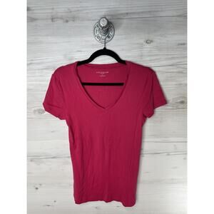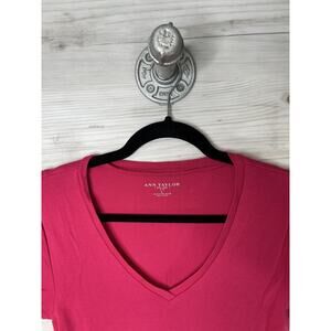 Ann Taylor Shirt Womens Large Solid Pink V Neck Short Sleeve 100% Cotton T-Shirt