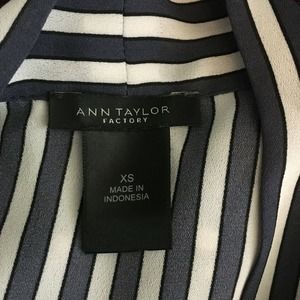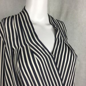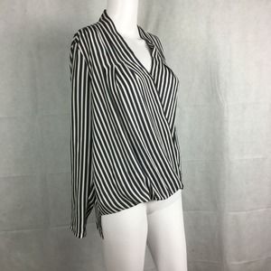 Ann Taylor Shirt Womens Sz XS White Gray Striped Wrap Front Top Blouse Career