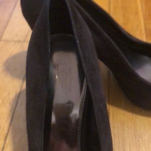 These are beautiful pre-loved Dark brown chocolate suede pumps.