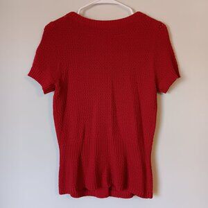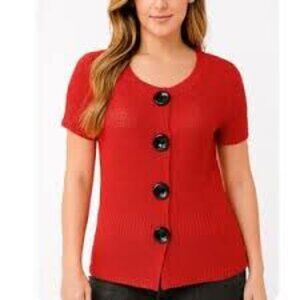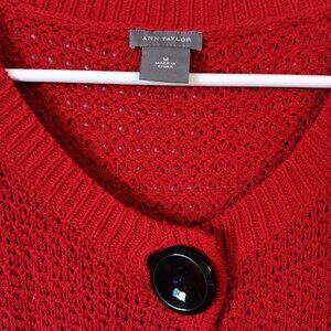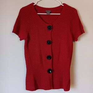 🍁 Ann Taylor Short Sleeve Red Cardigan with Chunky Buttons Size M
