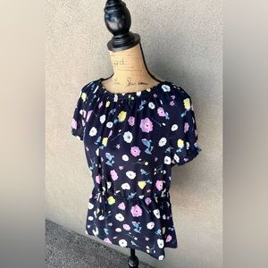 Ann Taylor Short Sleeve Smocked Waist Floral Blouse