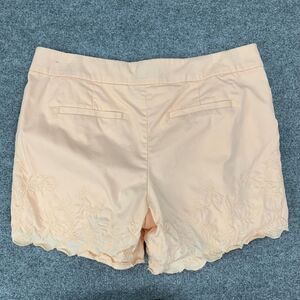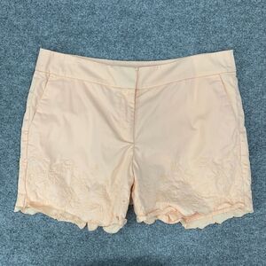 Ann Taylor Short Womens 10 Floral Embroidered Peach Scallops Hem Signature